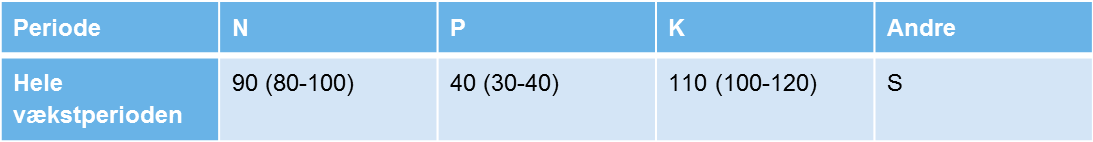 Vejledende gødningsmængder ved en høst eller to høstninger: