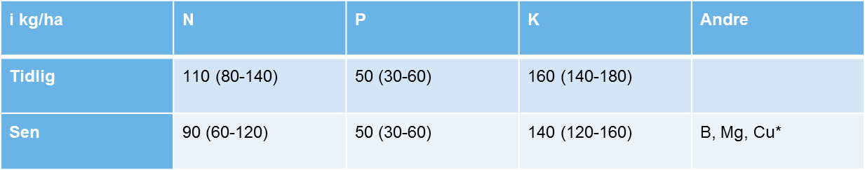 *Kobbermangel er mest typisk på mosejord. YaraMila™ 14-3-15 indeholder kobber og man kan bladgødske med YaraVita Coptrac.