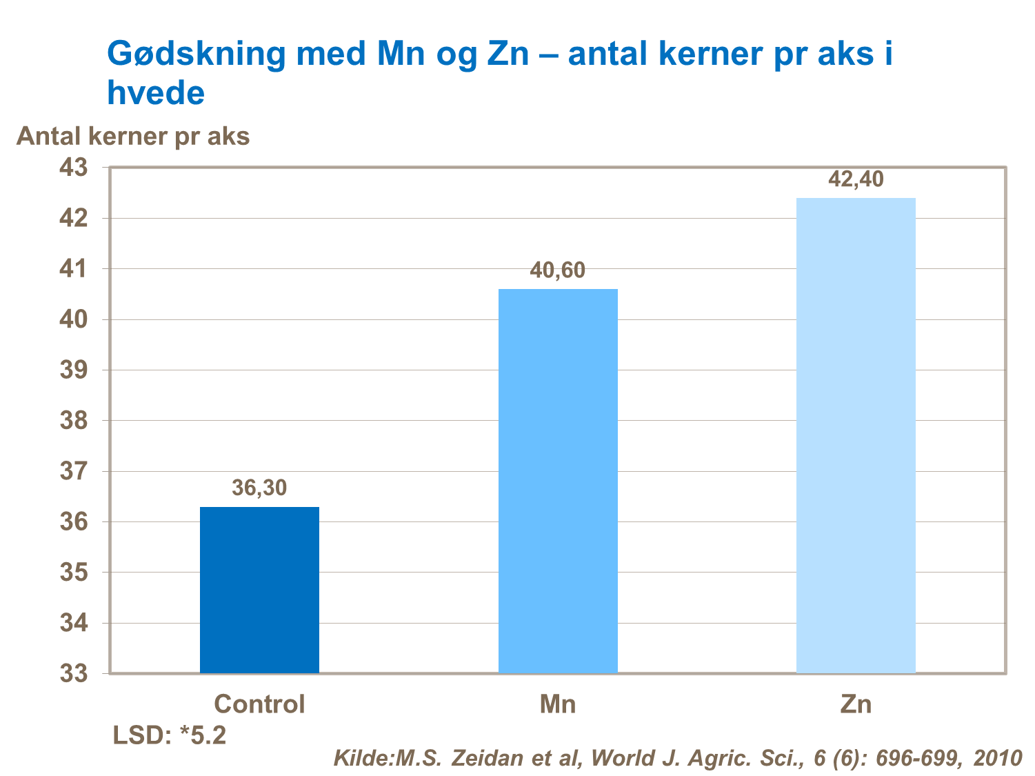 Dette studie fra PTA (Potash Development Association) viser klart og tydeligt sammenhængen mellem kalium tilgængeligheden og antallet af kerner pr. aks. Kaliumangel kan altså resultere i manglende kerneudvikling.