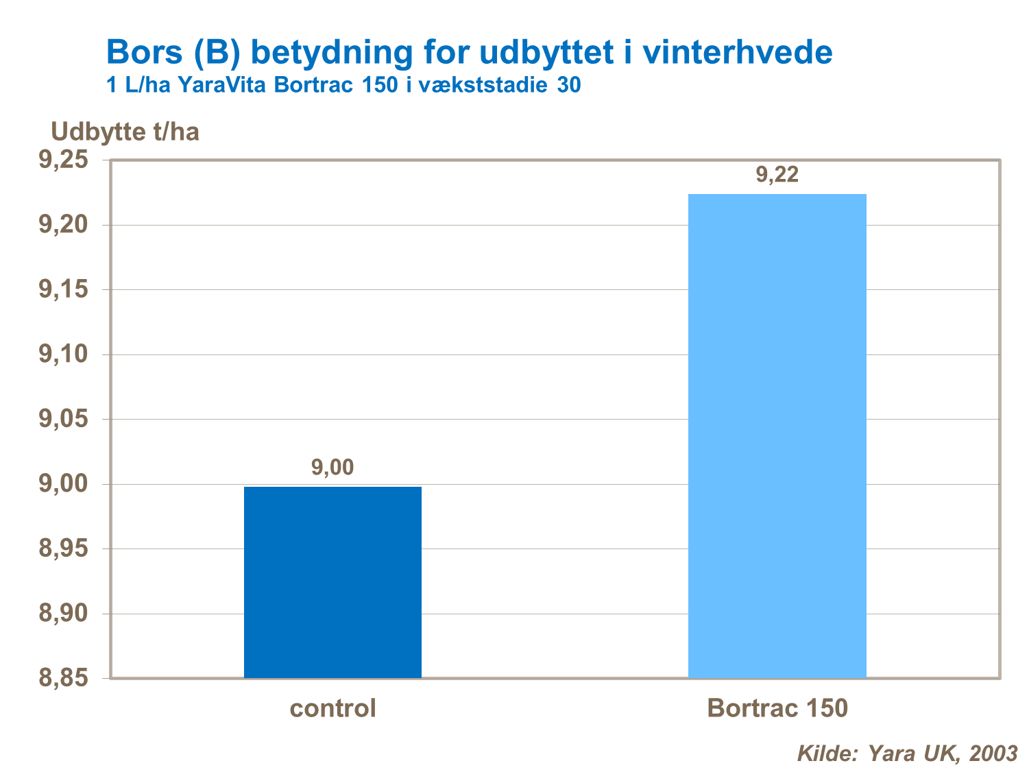 Herunder kan du se andre forsøg med forskellige næringsstoffer og deres påvirkning af udbyttet og antallet af kerner i vinterhvede.
