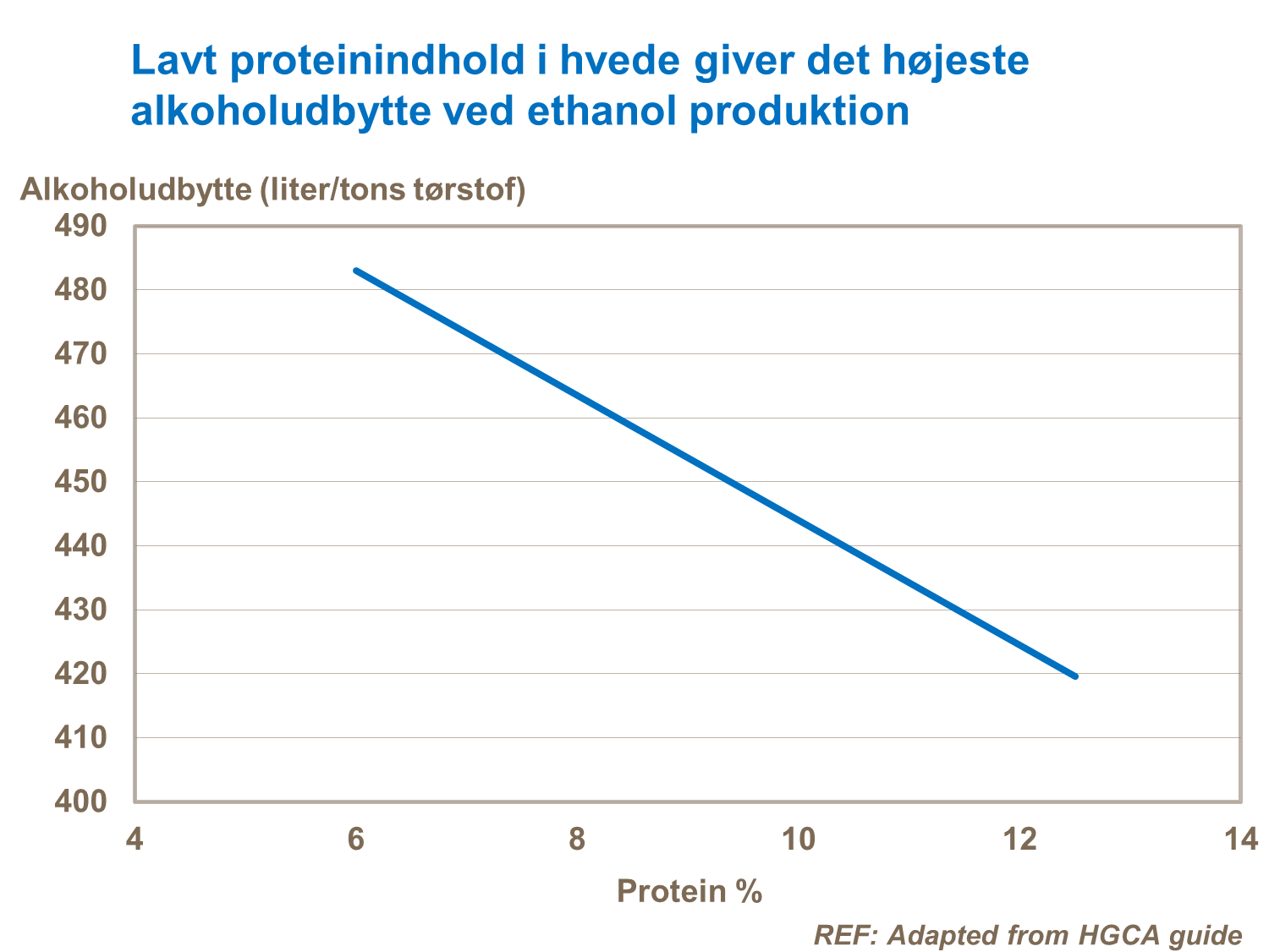 Kvælstof er det vigtigste næringstof som direkte kan påvirke kornets stivelses indhold. Højt ethanol indhold er omvendt relateret til korn kvælstof, med andre ord, lavt korn kvælstof (eller protein) er en indikator for højt stivelsesindhold, og dermed potentielt højt bioethanol udbytte per ton. Hvis kornet er dyrket særligt for ethanol bør styringen af næringstoffer justeres i overenstemmelse hermed. Kvælstof bør benyttes tidligt på dyrkningssæsonen hvilket hjælper med at undgå senere kvælstofs brug for at opnå øget protein indhold.