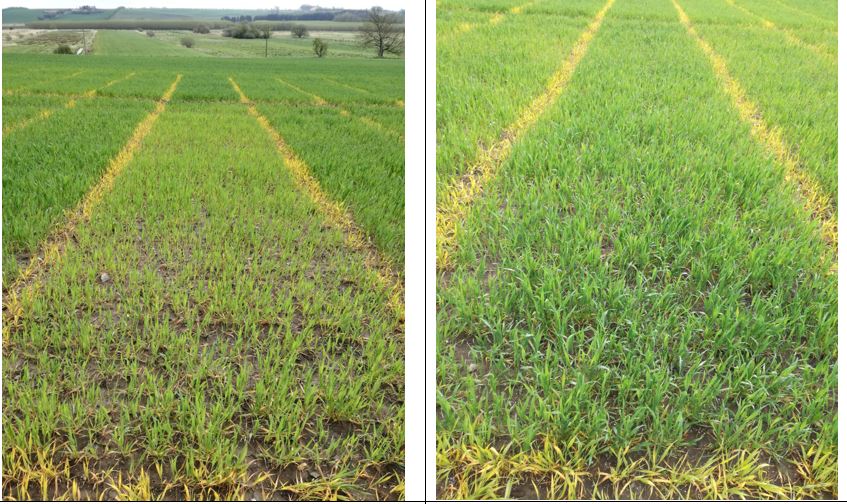 Kvælstofoptaget fra det tilførte kvælstof i vinterhveden i Himmerland er knapt begyndt. Hveden har haft det tørt og de kolde nætter har lagt en dæmper på væksten. Mineraliseringen fra jorden er heller ikke begyndt og der er ikke optaget kvælstof i parcellen som ikke er tilført kvælstof.