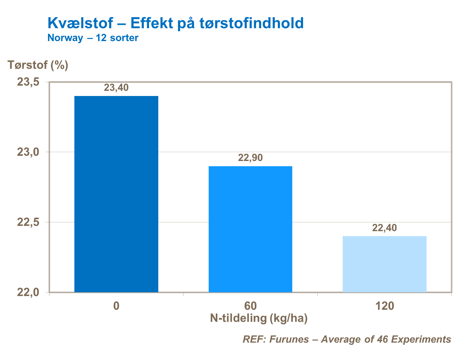 Forsøget herunder fra Norge viser hvordan sen og overdreven anvendelse af kvælstof kan reducere tørstofindholdet.