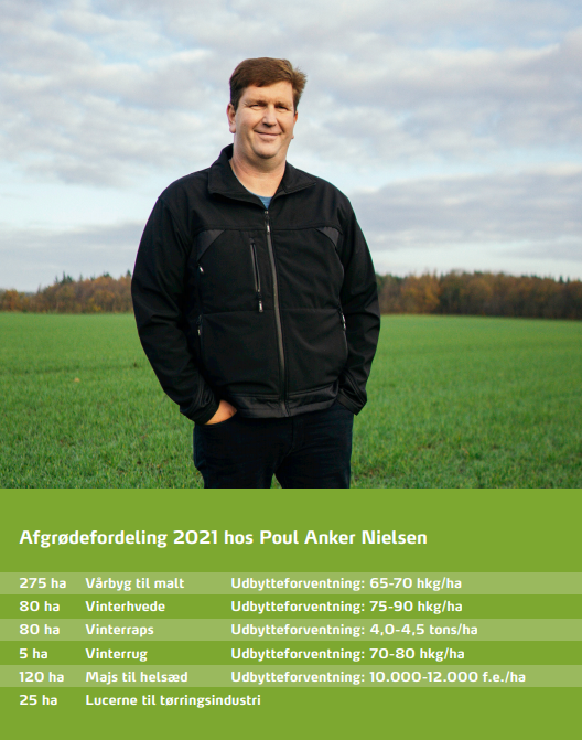 Poul Anker Nielsen er eneste fuldtidsbeskæftigede på sin egen og faderens sammenlagt 585 ha store planteavlsbedrift. Dertil kommer pasningsaftaler på yderligere 70 ha og lidt sprøjtearbejde samt mejetærskning for nogle naboer.
