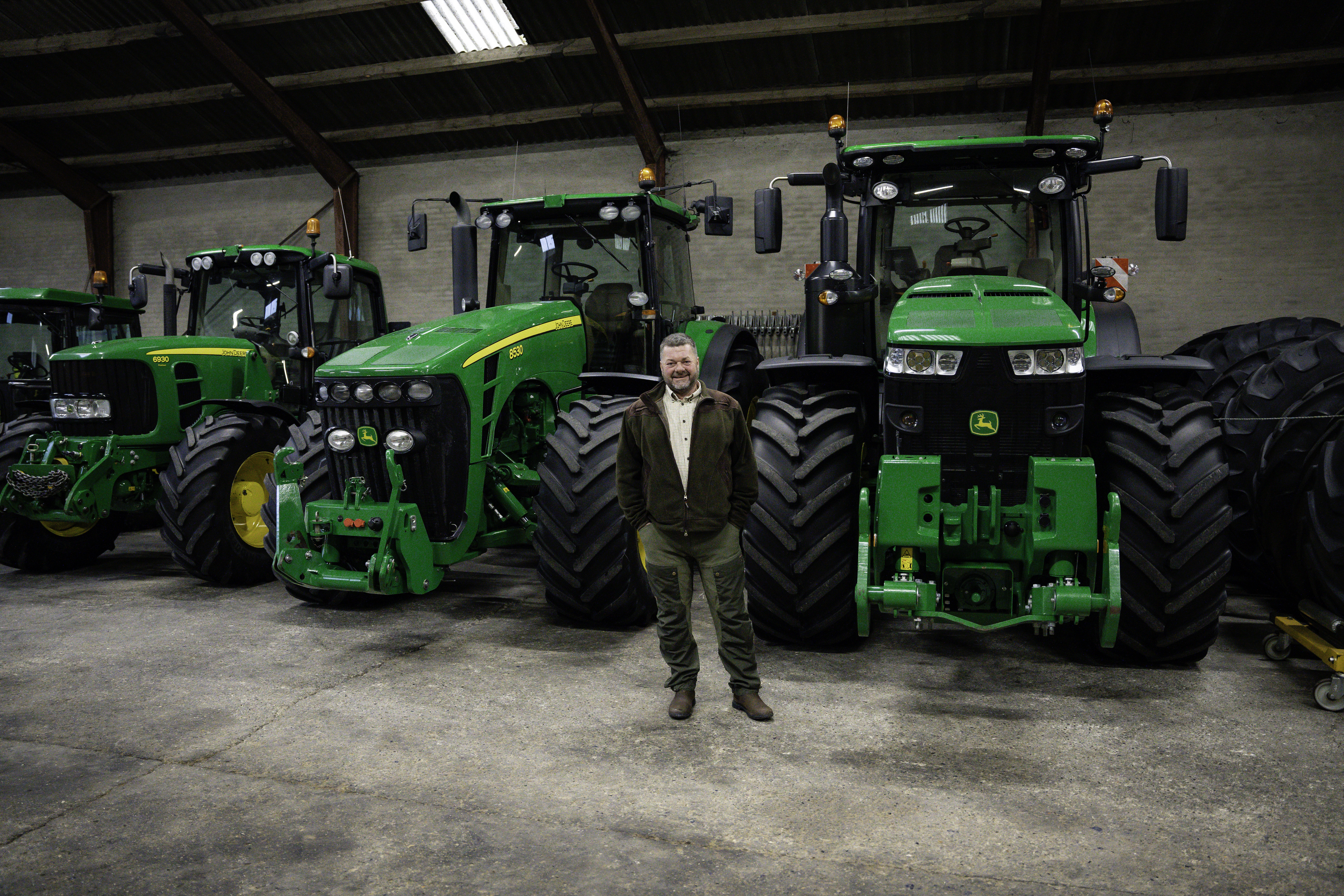 Da vi ankommer til Carsten Siegumfeldts bedrift Asmushøj og Søndergaard Landbrug, bliver vi modtaget i maskinhuset. Det er tydeligt for enhver, at Carsten Siegumfeldt går op i sin maskinpark og dens vedligeholdelse. Hallen er fyldt op af traktorer, som står snorlige og skinner. Trods år på bagen, ser de alle mere eller mindre fabriksnye ud og er klar til forårsarbejdet.