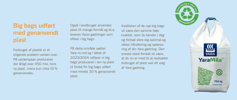 Martin Seemann nævner videre, at Yara i løbet af 2024 vil levere gødningen i big bags, som er udført med genanvendt plast, modsat jomfrueligt plast i dag.