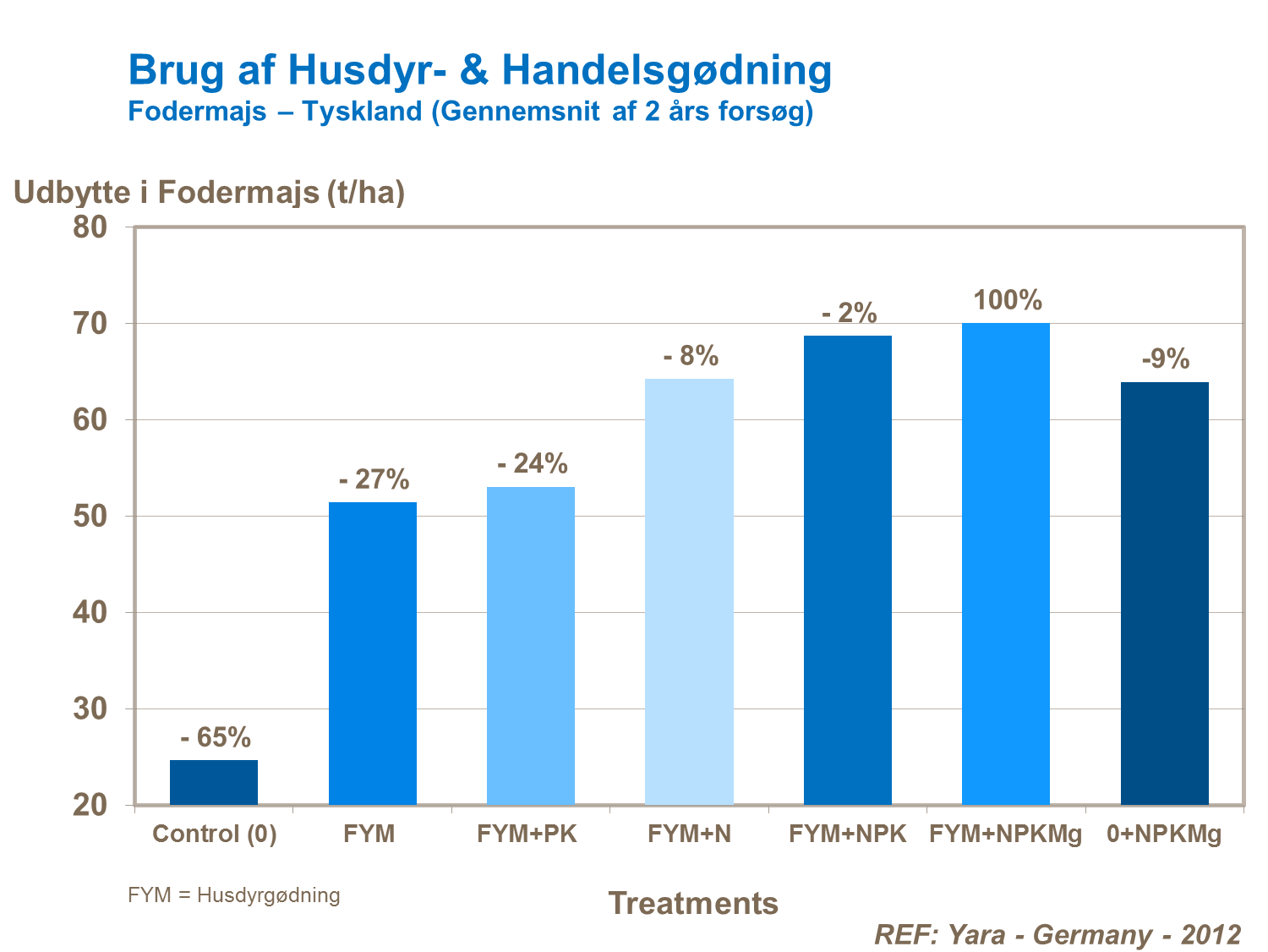 Det er vigtigt at overveje brugen af husdyrgødning, når et gødskningsprogram tilrettelægges for afgrøderne. Næringsunderskud skal undgås og forsøg viser klare responser for anvendelse af gødning sammen med husdyrgødning.