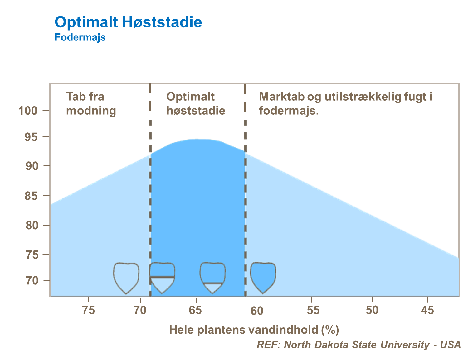 Majs til modenhed høstes når majskernerne har en tilpas tørstofprocent.