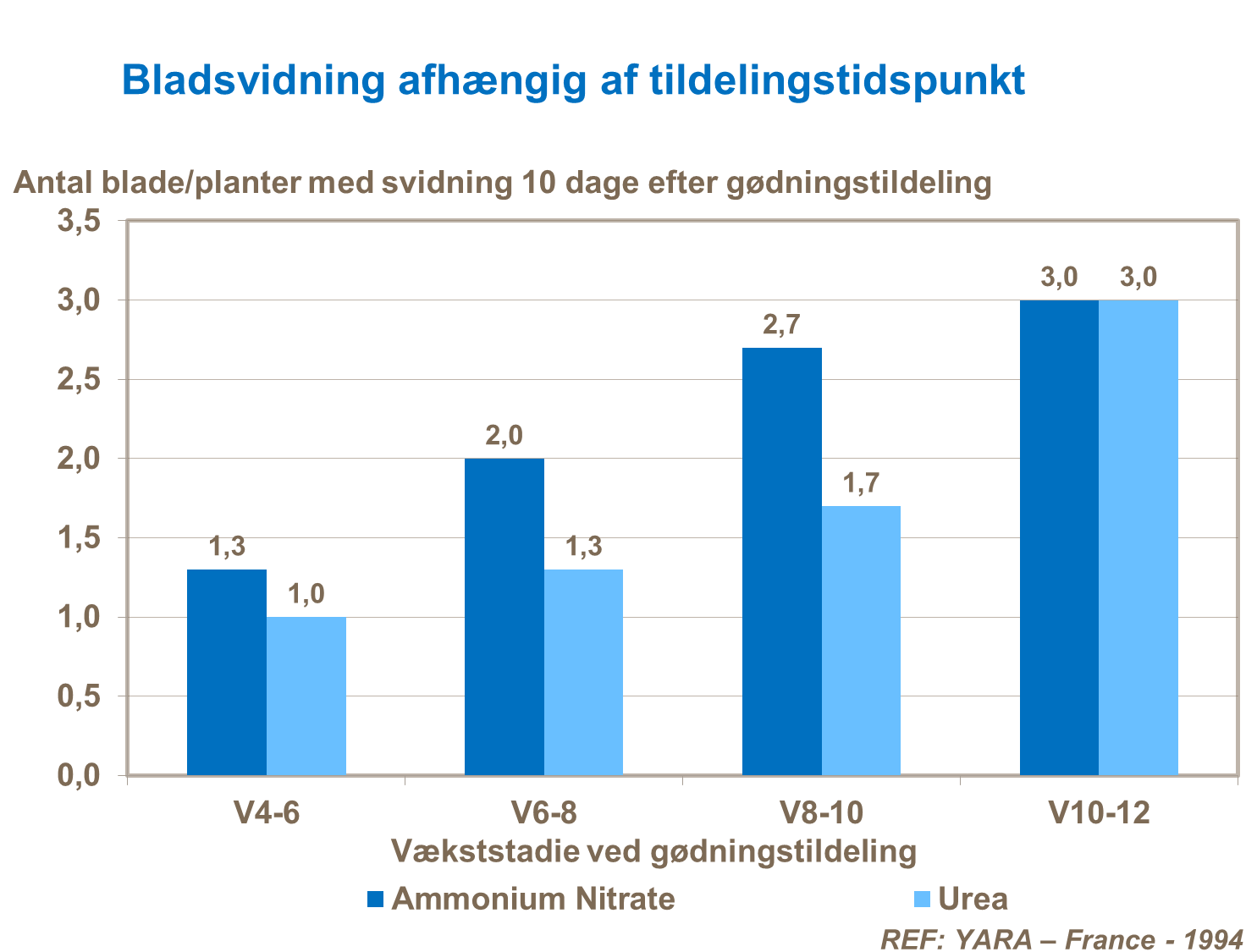 Selvom svidning sjældent har en direkte effekt på udbyttet, som et resultat af plantens evne til at komme sig, har fransk forskning vist at bredspredning er mest optimalt inden V6 stadiet.