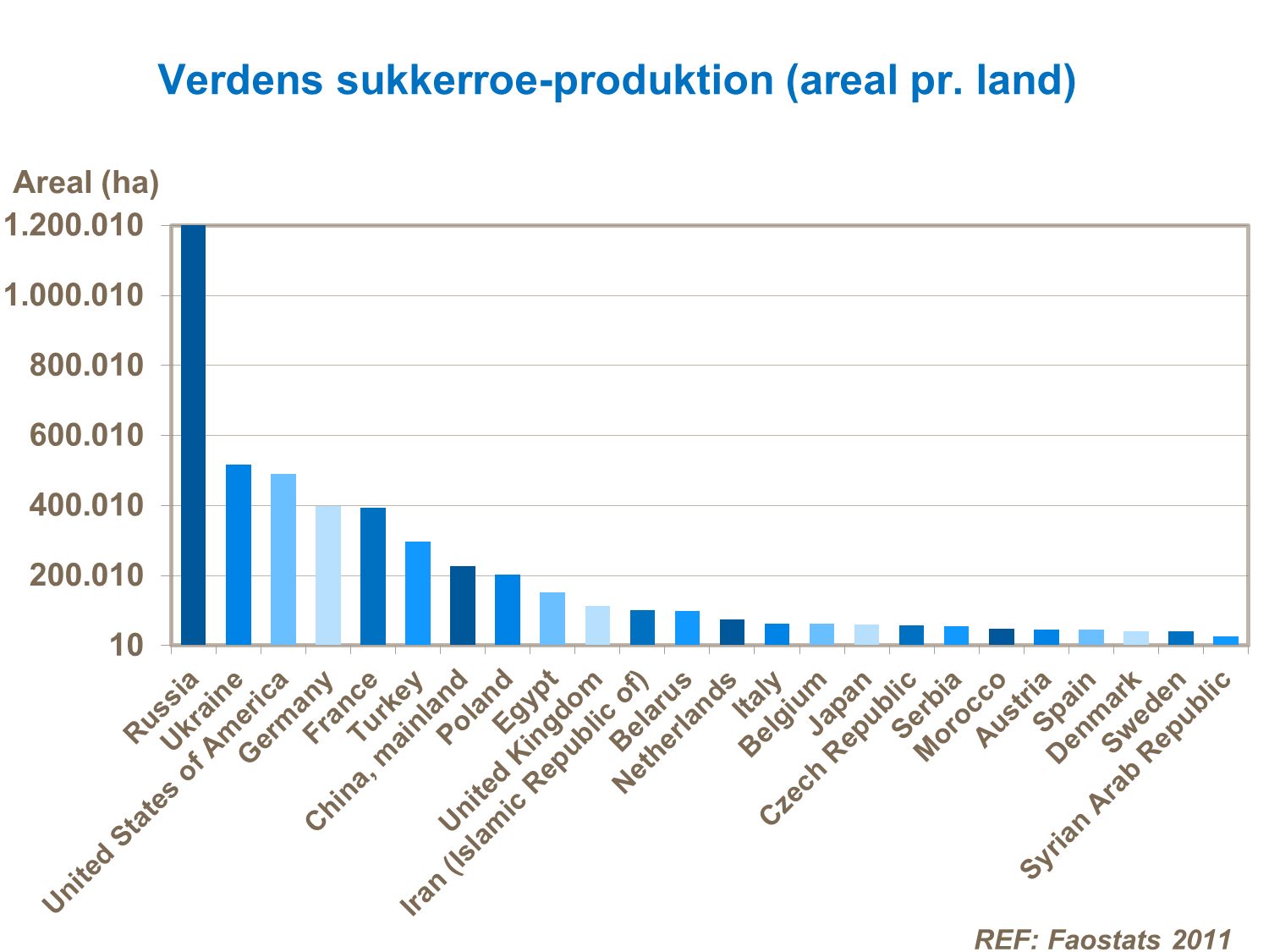 I Danmark dyrkes der ca. 38.000 ha med sukkerroer, hovedsageligt fordelt på Lolland Falster og det sydlige Sjælland.