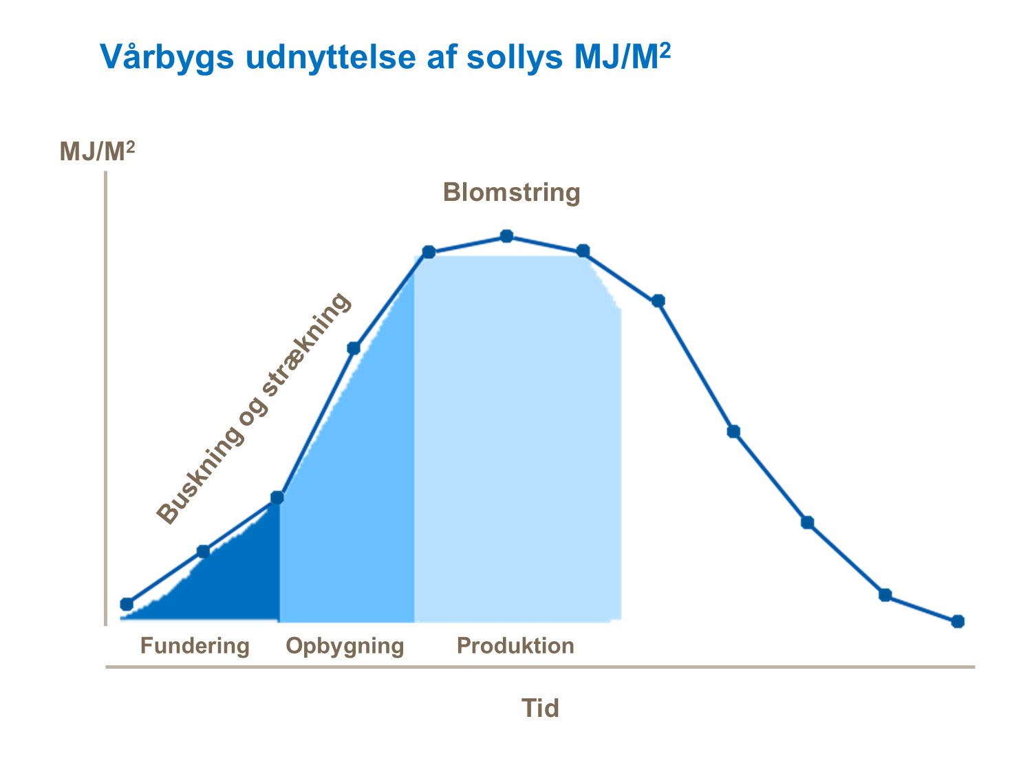 Det fundamentale mål med produktionen af afgrøder er at konvertere fotosyntetisk aktiv stråling til tørstof, der senere kan blive udnyttet som foder, mel eller som råmateriale i energiproduktion. Der er en klassisk lineær sammenhæng mellem lysopfangelse og det totale tørstof produceret i vårbyg. Det er også kendt, at der i nuværende vårbygsorter er et høstindex på omkring 50 %, hvilket vil sige, at ca. 50 % af det totale tørstof vil blive konverteret til kerneudbytte.