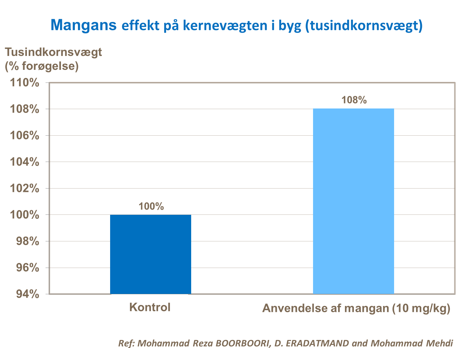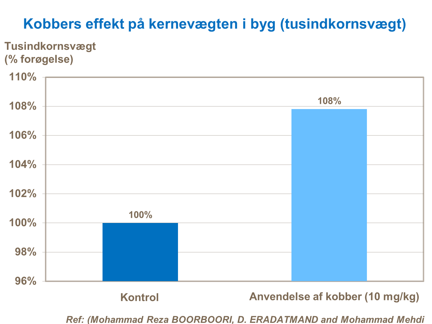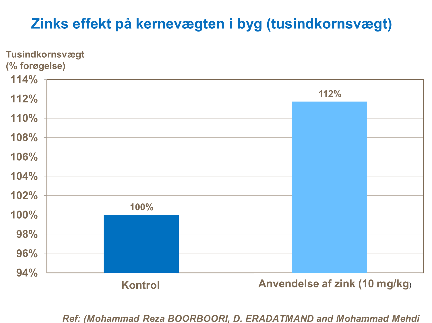 Undersøgelser har vist at anvendelse af mikronæringsstofferne zink, kobber, mangan og bor alle har forbedret tusindkornsvægten i byg.