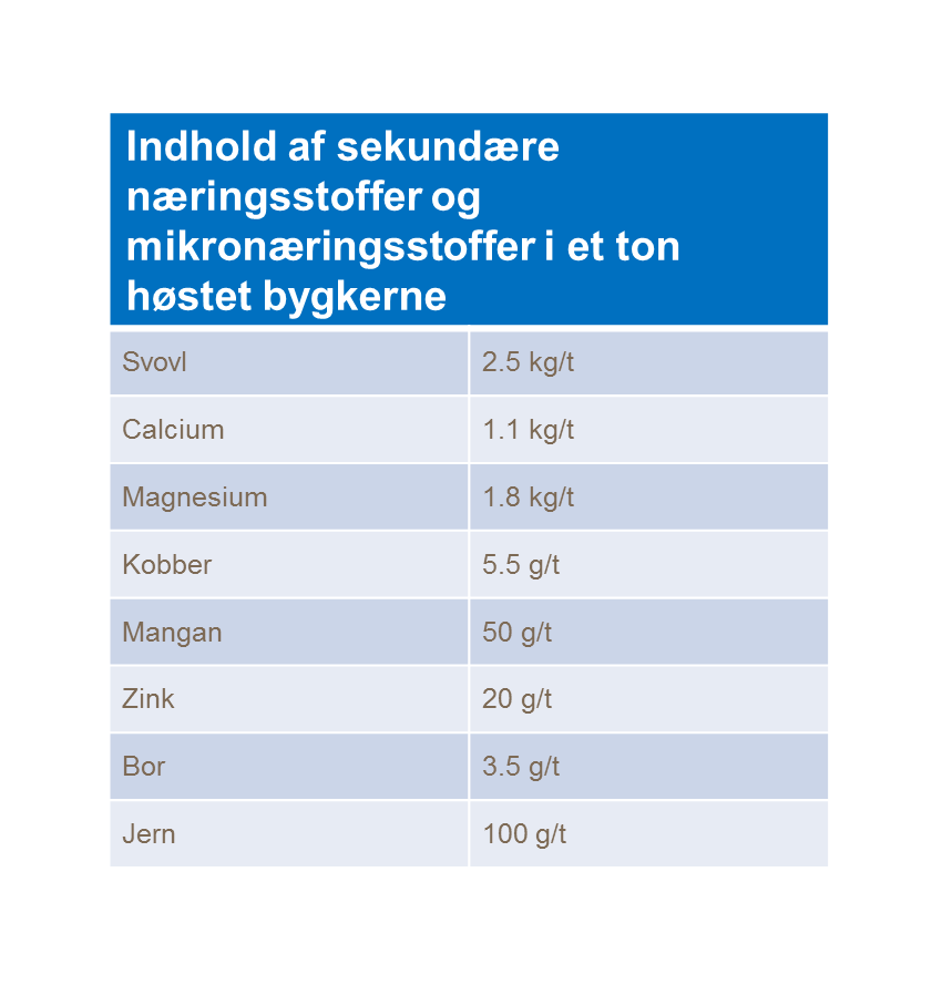 En velbalanceret gødningsstrategi er essentiel og bør også indeholde sekunddære næringsstoffer, som bl.a. mikronæringsstoffer, der er vigtige elementer i at opnå høje udbytter. Som ved makronæringsstofferne vil det største behov være i vækstperioderne.