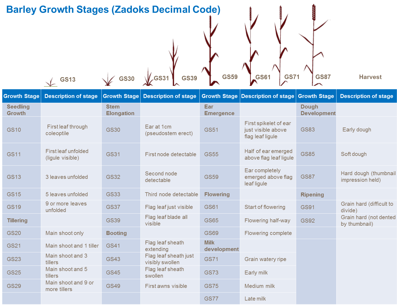 Vårbyg gennemgår tre særskilte faser når den udvikler sig fra såning til høst. Disse kan beskrives som: